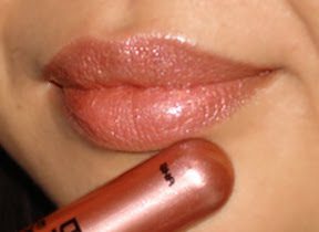 Expansion Lipgloss: pigmented iridescent peachy-pink, the flash washed this out in the photo so it looks very natural, but in real life it does show up pretty well on the lips