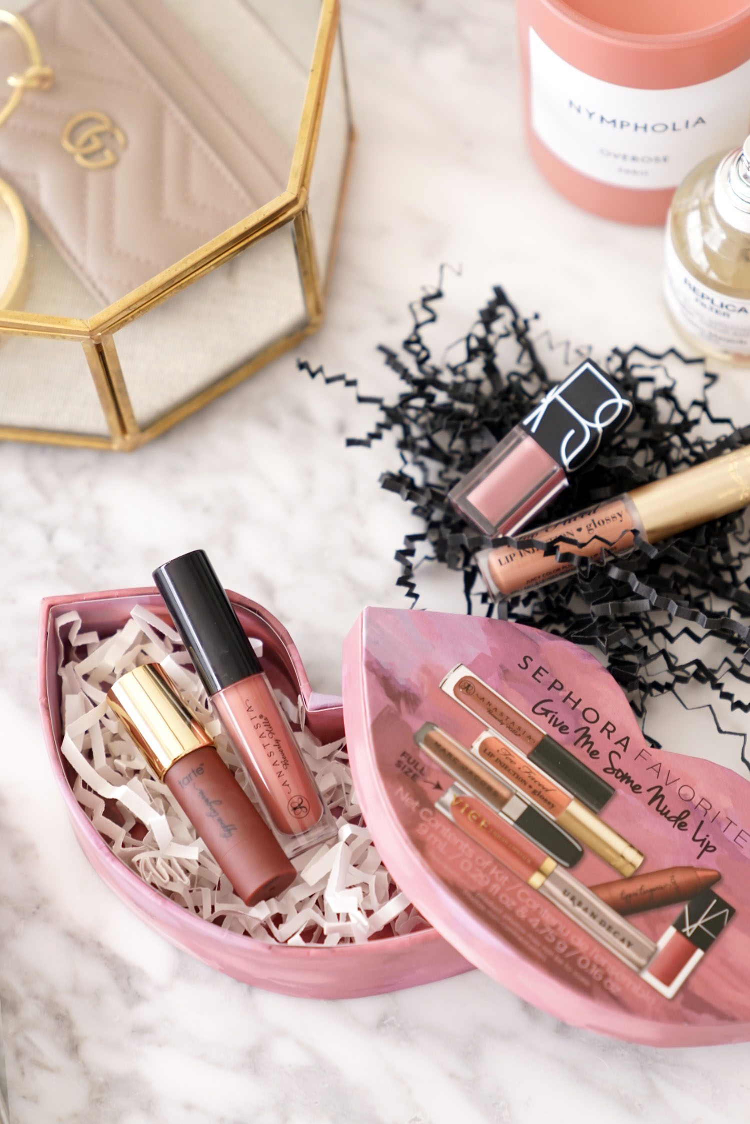 I’m a sucker for minis so when I saw the Sephora Favorites Give Me Some Nude Lip Set ($28, limited-edition) it didn’t take me long to buy one. It sold out online but just restocked so if you haven’t seen it yet I hope these swatches will either help you decide to splurge or save $$$. I also got their Beauty Insider Birthday Gift and redeemed my points for a Tarte mini so I thought I’d round them all up in one post here.