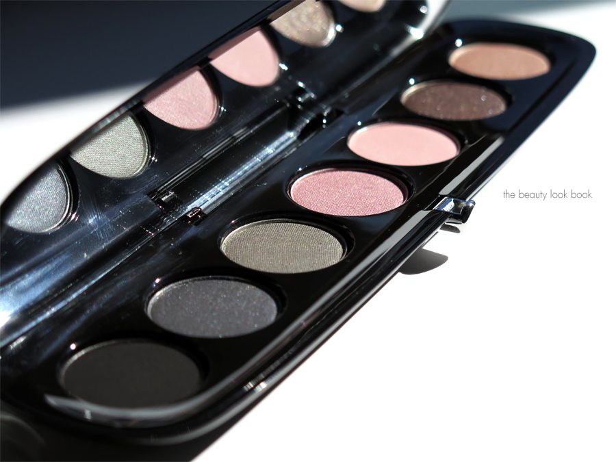 Overall the palette pulls more cool-toned on me, but it’s still neutral. I like that the pink shimmers have a visible soft rose-colored base but don’t give me a pink-eye look. All the shades are well pigmented. The shimmers have a softer more pigmented texture but the satiny-mattes also go on the lids nicely. I’ve played with this a number of ways using 3-4 shades with any given eye look.