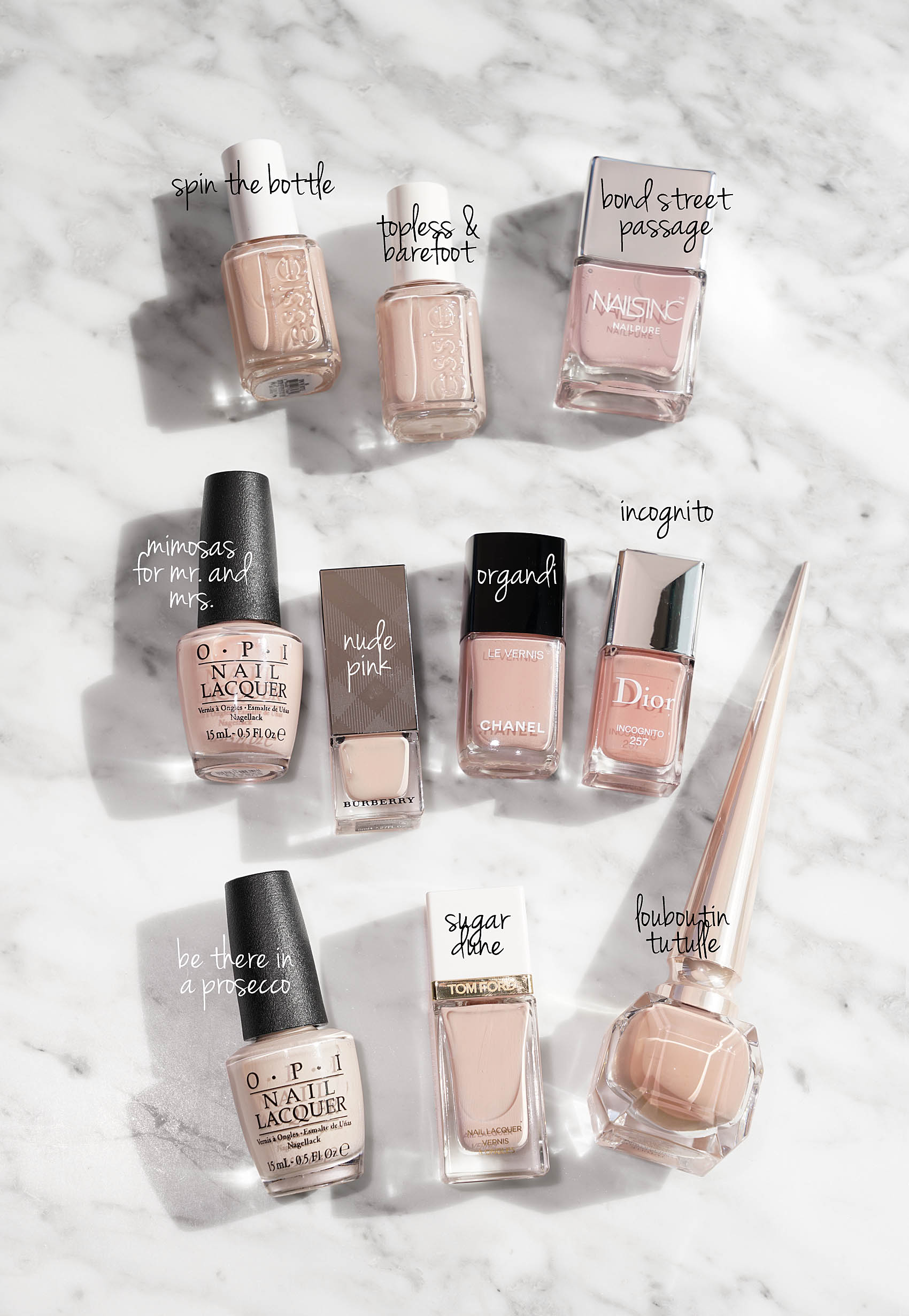 My top three favorites of the moment: Tom Ford Sugar Dune, Louboutin Tutulle and Chanel Organdi.