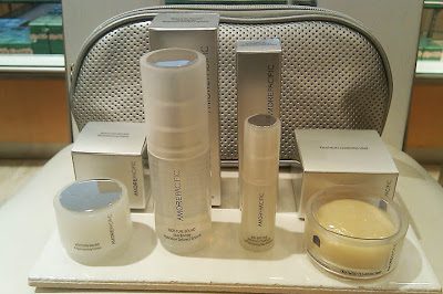 KAPLANMD Blue sheer drawstring bag with Intensive Eye Concentrate and Night Replenishing Concentrate; $300 minimum purchase. All of the above, plus Purifying Foam Cleanser and Clarifying Toner; $400 minimum purchase.