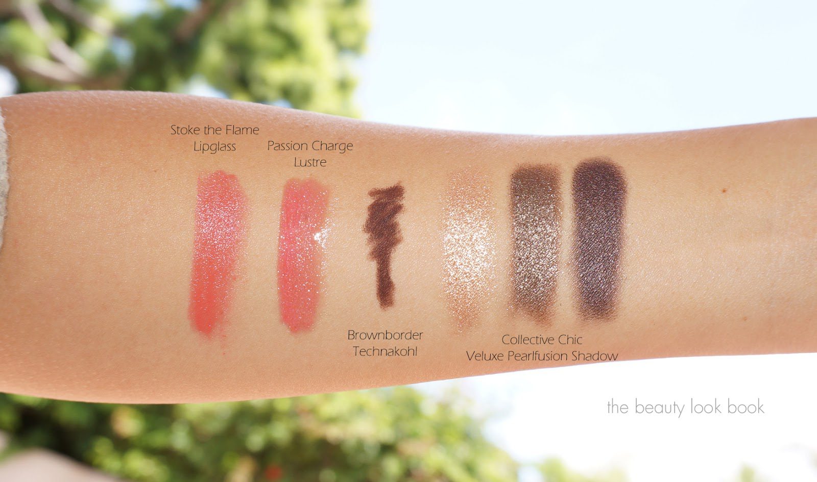 I bought this mainly because I fell in love with the lip items. The Passion Charge lipstick and Stoke the Flame lipglass combination creates a pretty peachy coral lip that’s perfect for summer. The lipstick is a lustre formula but has impressive pigment for a glossy lipstick. The lip glass looks good layered over lipsticks but has enough color to wear alone.