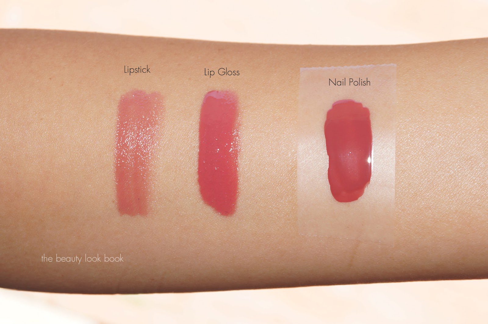 The lipstick is on the sheer side with a glossy sheen but still gives enough color to show up on the lips. The lipgloss is very pigmented and smooth without any detectable scent. The nail polish is in the older packaging (the cap doesn’t remove) and has a shorter brush which I find makes it super easy to apply smoothly without any issues. Two coats gives full coverage.