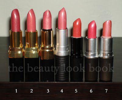 1. Chanel Ischia #96 Aqualumiere 2. Chanel Tasmania #99 Aqualumiere 3. Bobbi Brown Ruffle Metallic Lip Color 4. Le Metier de Beaute Cannes 5. MAC Strawbaby Lipstick (Fafi label came off) 6. MAC Party Mate 7. MAC Skew