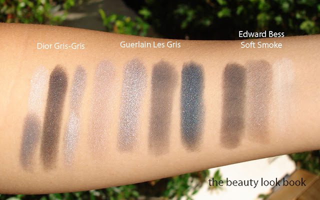 I pulled a few classic smokey eye palettes from Dior and Edward Bess. To date, Edward Bess Soft Smoke is my holy grail smokey eye palette (most others are too ashy or harsh for my skin). For all three, I would say the Dior is the most silvery-blue, Edward Bess is the classic, Guerlain’s Les Gris is a blue-grey version of the classic smokey eye.