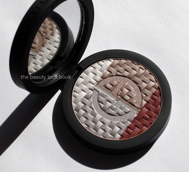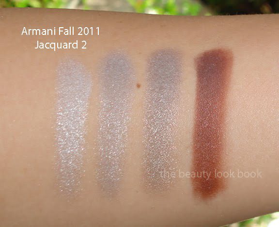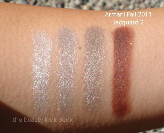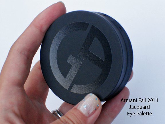 Giorgio Armani’s Jacquard Collection this fall is among the most beautiful and unique for the intricate embossed woven texture of the palettes. I ordered Eye Palette #2 ($59) after seeing it featured on Front Row Beauty. The palette has a unique trio of shimmery greys combined with a deep matte warm brown with a tinge of auburn. This fall the compacts are magnetized instead of having the snap-click closure. The top comes with painted with the Armani logo in a high gloss black finish.