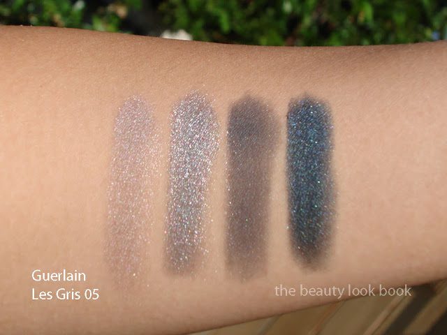 Guerlain Les Gris 05 seems to be ideal for a dramatic smokey eye with a cool-toned finish. The palette seems to have a good mix of matte with shimmer. The texture is smooth and pigment is nice. Initially I was torn between Les Gris 05 (see it on Best Things in Beauty) and Les Noirs 09 (see it on Makeup and Beauty Blog). I decided to opt for the blue-grey palette because it seemed more unique to me. The descriptions of the colors from left clockwise: a sheer neutral-cool matte grey, a soft silvery shimmer with a very slight mauve tinge, a brilliant silver metallic, an intense dark navy-teal with finely milled shimmer.