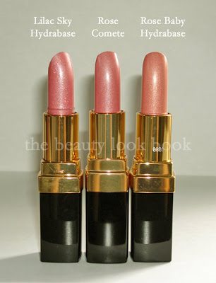 Here are a couple of the Hydrabase tubes compared to the Rouge Coco Tubes, left to right: Lilac Sky Hydrabase, Rose Comete Rouge Coco, Rose Baby Hydrabase (Euro)