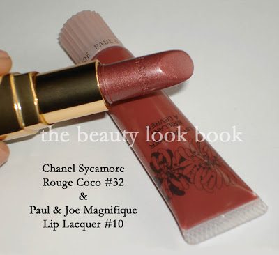 Today’s lips of the day features the new Chanel Rouge Coco in Sycamore #32 and Paul & Joe’s Lip Lacquer Magnifique #10. Both colors are in the plummy-brown category.