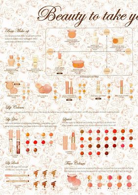 I haven’t tried much from Lancome with the exception of their blushes and Bifacil makeup remover, so I’m not really familiar with the line. I assume their product launches are similar to Dior where they release different items in different countries. I know for holiday, Asia got that pretty pink cherub highlighter while the US only got the golden bronzey one. It appears there are 2 versions of the Pop N’Cheeks Gentle & Lasting Color Powder Blush as well, I only saw 01 Coral Flirt at Nordstrom, but the Asian catalogs show another pretty peach/pink blush 02. I believe I saw a few different glosses that are not shown in these previews as well (the ones in the round tubes).
