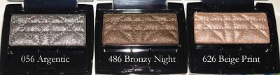 I ended up purchasing two of the shades Bronzy Night 486 and Beige Print 626. I had purchased Argentic 056 when the fall collection came out.