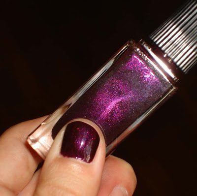 * Sparkling Shine Lipstick – sparkling warm nude-gold * Caramel Blush – the perfect caramel nude blush * Royal Nail Polish – extremely deep purple with reddish undertones and subtle sparkle * Magic Lipgloss (thanks to the sweet SAs who threw this in as a GWP!) – a rich ruby shimmer