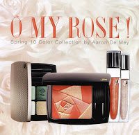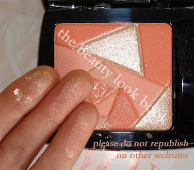 The Coral Flirt Blush is designed in an abstract rose pattern. The gold is only an overspray. The tester I saw had no gold left on the product, so I got to swirl it with my fingers. It gives a very sheer soft peach blush. If you’re familiar with Benefit Coralista & Georgia, I would say the new Lancome is in between those 2 shades once brushed on your cheeks.