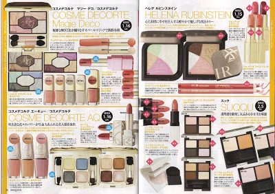 I scanned these from Maquia’s February 2011 issue. A few sneak peeks of what’s to come. Note, I cannot translate this so I won’t be able to answer questions about the products, your guess is as good as mine is. However, there are number indicators on some of the products which help me try to figure out the coordinating product number to name. Also note Maquia is a Japanese publication so I don’t know if the US will get all the items featured, I know in years past we haven’t, but I’m not sure about this year.