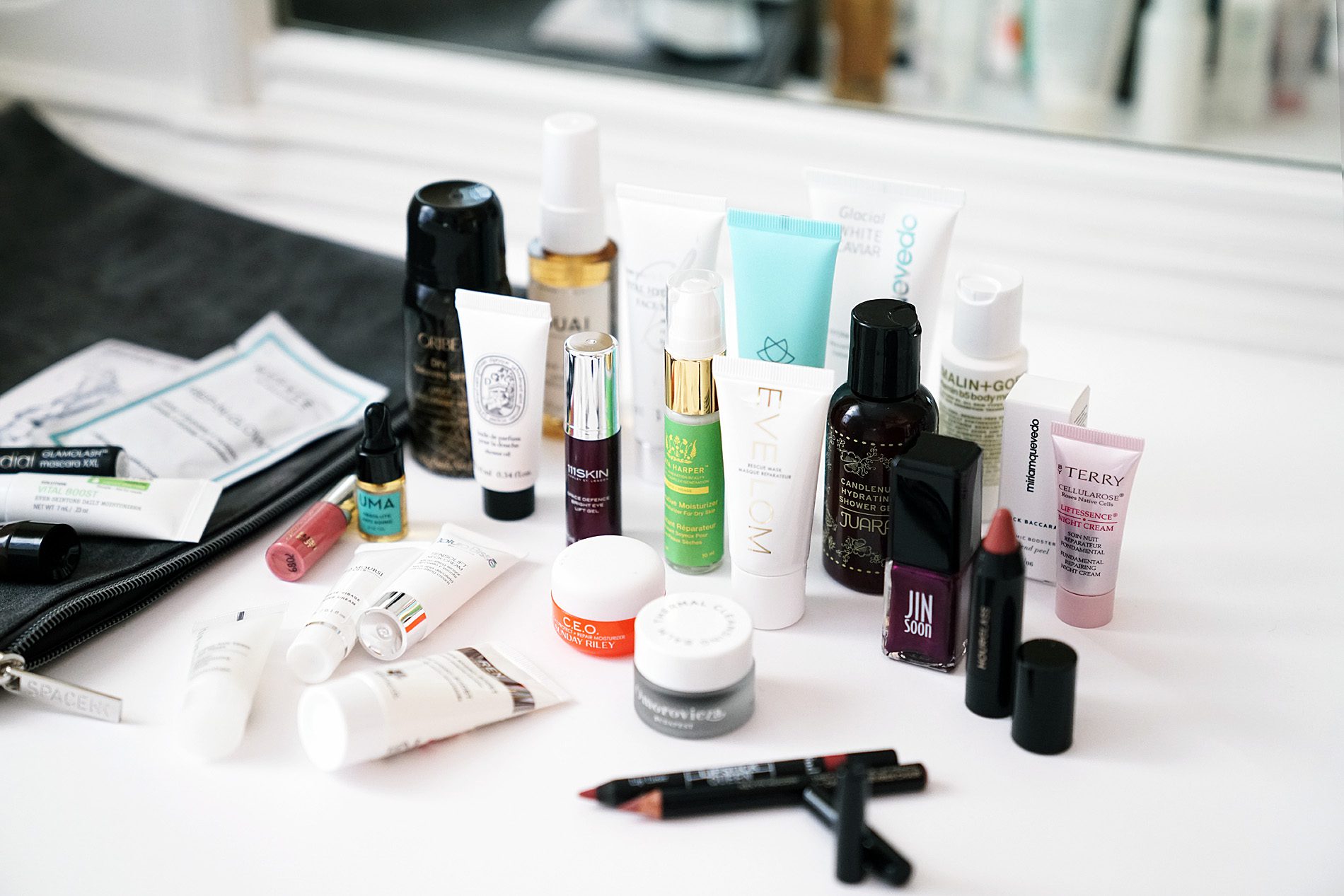 I love the deluxe miniature sizes of the skincare items. They give you enough product to really sample it! There are also a number of full-sized items like a Rose Inc. cream blush, Charlotte Tilbury Lipstick, Laura Mercier eyeshadow stick, Necessaire Hand cream and more.