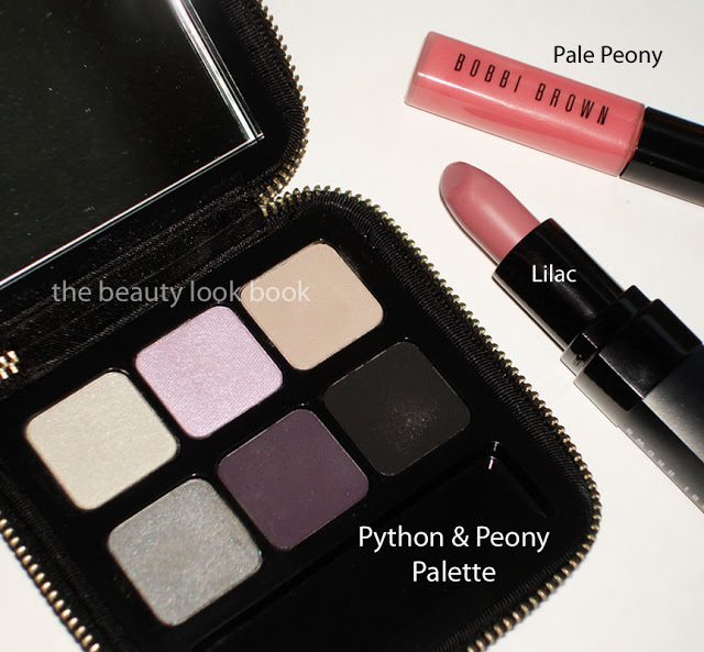 Here is the second installment of the Bobbi Brown & Tibi collaboration, new for spring 2011. We got our first sneak peek with an exclusive set from Neimans Preview Set (reviewed here). I finally had a chance to see the other items in the Python & Peony Collection and fell in love with the new eyeshadow palette, Lilac lipstick and Pale Peony gloss.