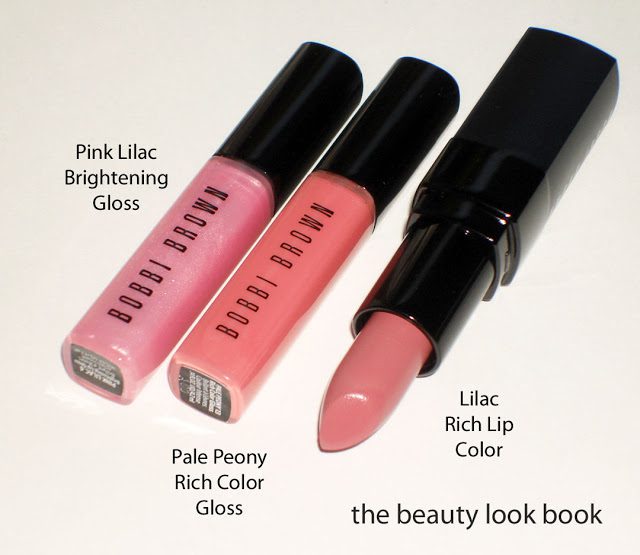 Lilac Rich Lip Color has previously been reviewed and swatched here. To recap, it’s a lovely lilac-pinkish cream color. It’s on the neutral-cool side, but not too cool. Beautiful full coverage, soft lightweight but creamy texture, long lasting. Pale Peony Rich Color Gloss is a sheerish cream pink – compared to other colors in this formula I found Pale Peony on the sheer side, but it still gives a noticeable coverage. There is a slight mint scent. Texture is not as sticky as her regular glosses. Here they are compared to the Pink Lilac Brightening Gloss so you can gauge how cool/lavender/pink these are.