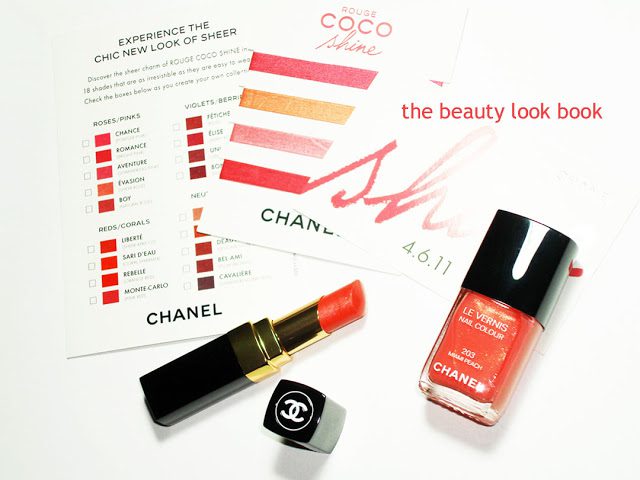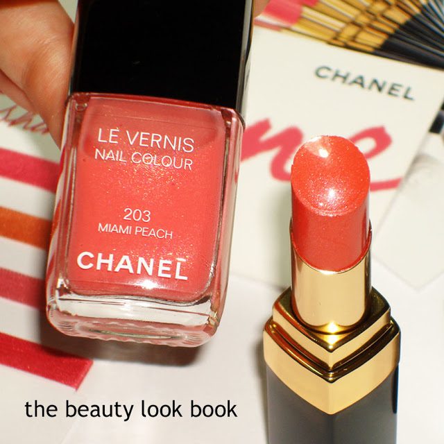 Chanel Rouge Coco Shine was launched in the US yesterday. I stopped by Neimans to pick up the two exclusives: Rouge Coco Shine in Misia 45 (bright tangerine with a silvery sheen) and Le Vernis in Miami Peach 203 (repromote from years past but exclusive to Neimans). Both are perfect for summer.