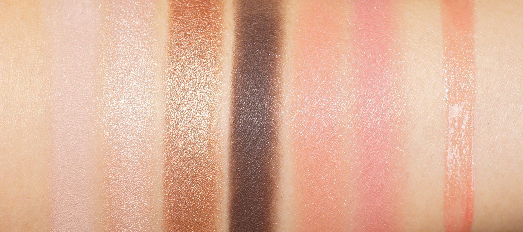 - Laura Mercier Kiss of Shine Lip Glace Collection (c/o) has five miniature glosses, one sparking sheer white and the others are creams, I received a press sample of the kit without names so unfortunately I don’t know what each color is called