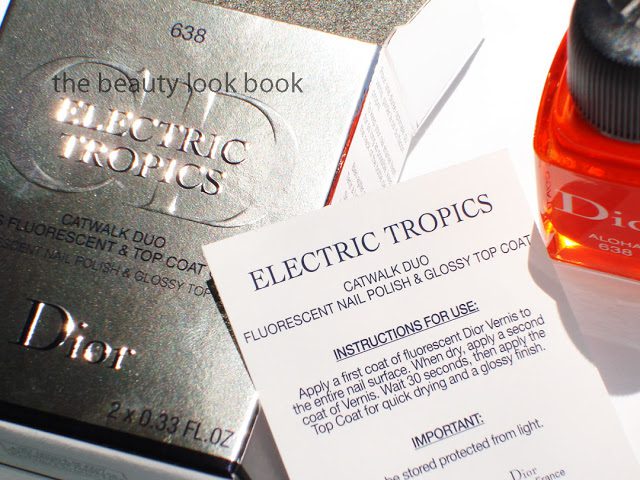 There are two color options for the Electric Tropics Catwalk Nail Duos ($26 each, on Dior.com, personally spotted at Nordstrom and Saks) which consist of a bright neon jelly-finish nail color paired with a quick-dry top coat. Aloha is an electified tangerine and Paradise is a glowing neon pink. The fact that both Aloha and Paradise are fluorescent made these incredibly difficult for me to photograph accurately. My camera doesn’t do so well with neons. Aloha photographed better so I decided to feature this one first.