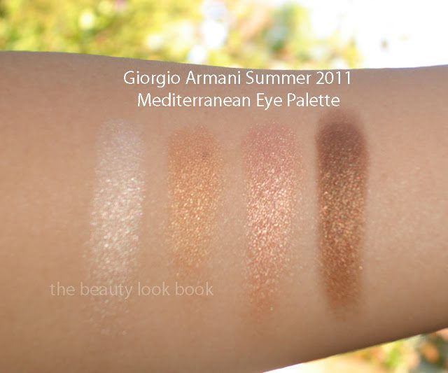 The Summer 2011 Mediterranean Eye Palette has four shimmery summery shades. From top to bottom I would describe them as: