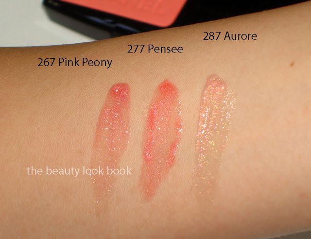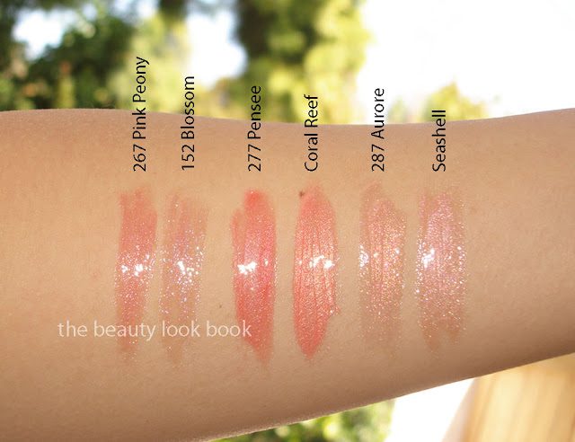 Compared to other shades, L to R: Pink Peony, Blossom, Pensée, Coral Reef, Aurore, Seashell
