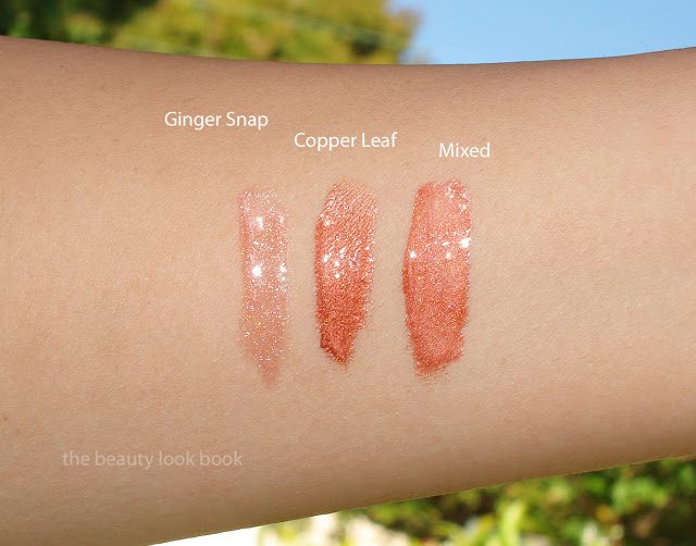 Here are the Lip Crèmes swatched, Ginger Snap, Copper Leaf, then mixed together (Copper Leaf dominates even when mixed in equal parts)