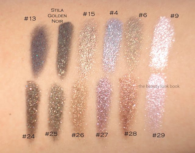 #24 is a blackened gold sparkle. It’s beautiful for a smokey liner or smokey eye. What I love about these is that they the pigment is easy to control by layering.