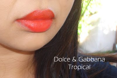 Tropical is a hot neon orange-red. This is also intensely pigmented and not an easy shade to pull off for me.