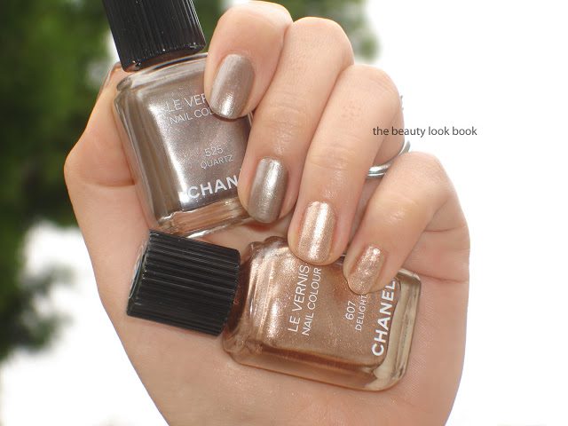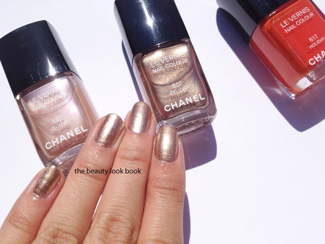 - Delight is more golden, highly metallic/sparkley and warmer in tone