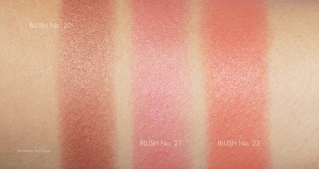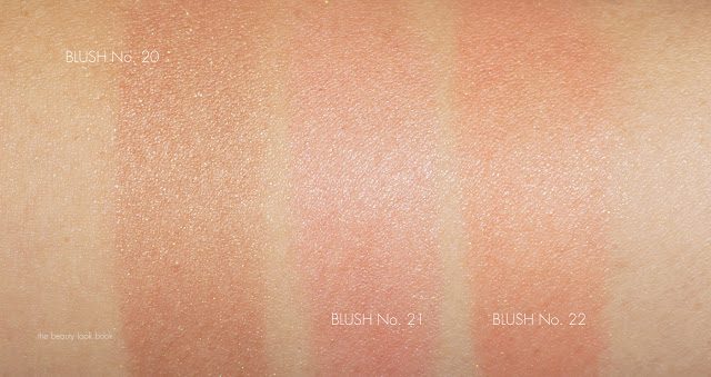 The three shades have a very tiny hint of shimmer in them. On the skin the shimmer disappears but rather gives the cheeks a glow-from-within kind of luminous look: